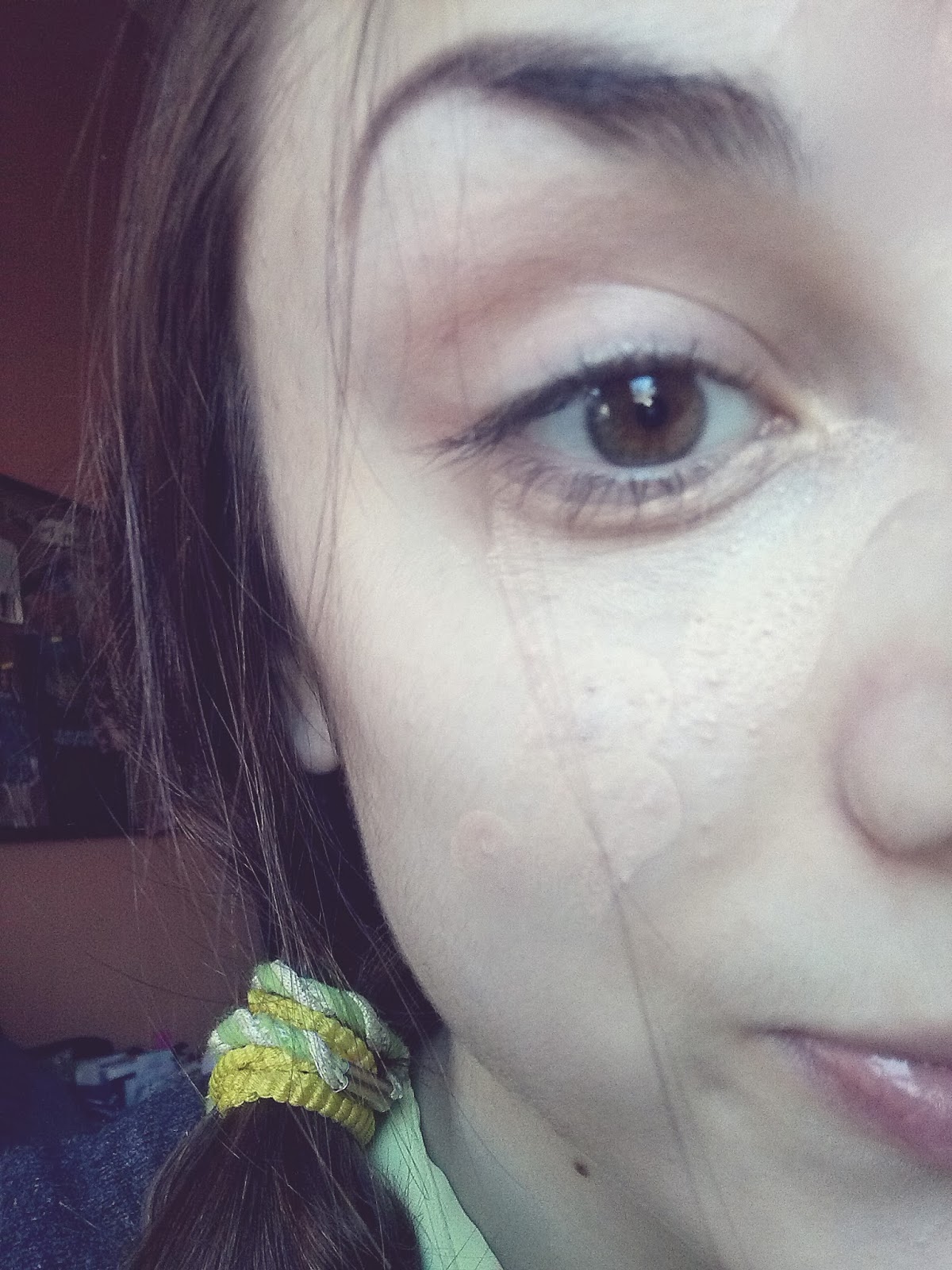 1. Nałożyłam korektor z Miss Sporty na wypryski i pod oczy